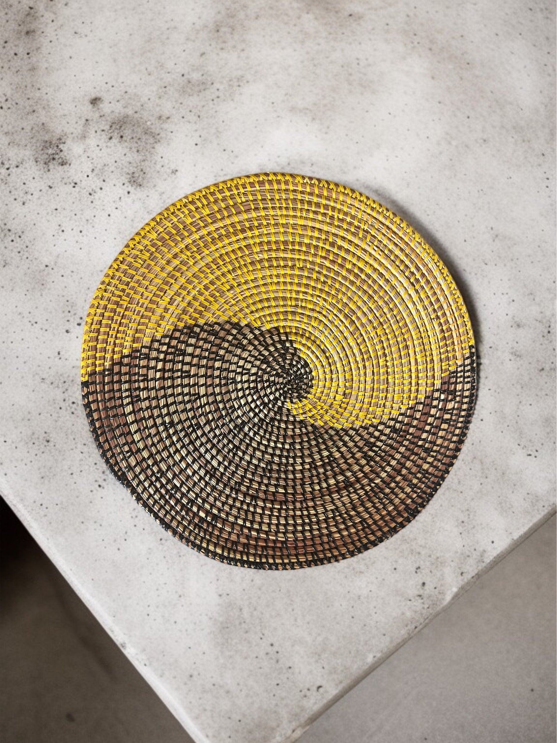Ces plats faits à la main sont parfaits pour vos tables et pour décorer votre maison. Réalisés par des femmes au Sénégal, leur savoir-faire se transmet de génération en génération.(34-36 cm)